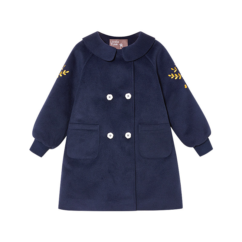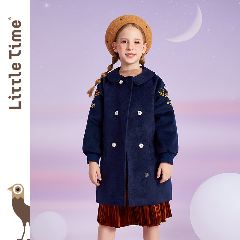 Littletime girls woolen coat autumn winter embroidery 2021 new mid-grown children thick warm coat