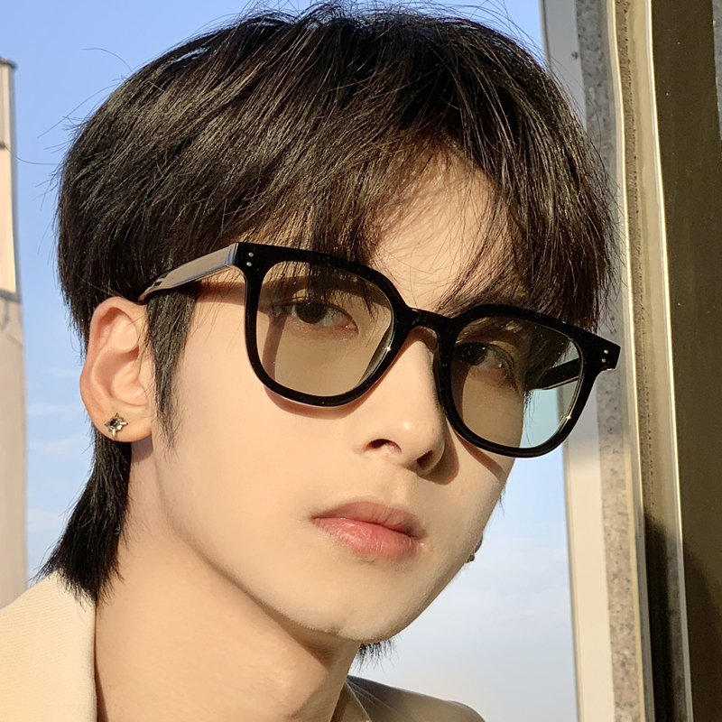 Bright black frame transparent yellow sheet Bright black frame transparent tea sheet Bright black frame transparent green sheet Transparent frame light tea sheet Bright black frame black gray sheet Bright black frame transparent powder sheet Customized myopia sunglasses - please consult customer service