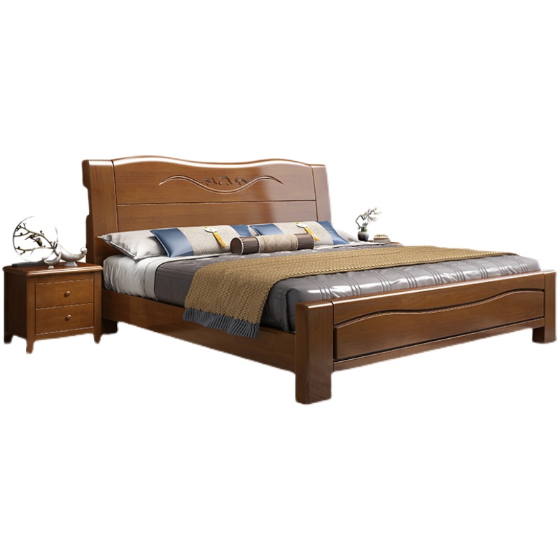 Solid wood bed double bed 1 8 meters modern minimalist 1 5 meters single economy master bedroom wedding bed Chinese style high box storage bed