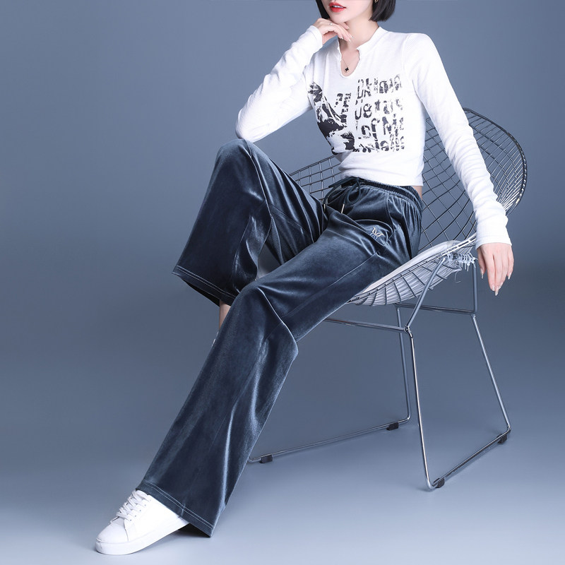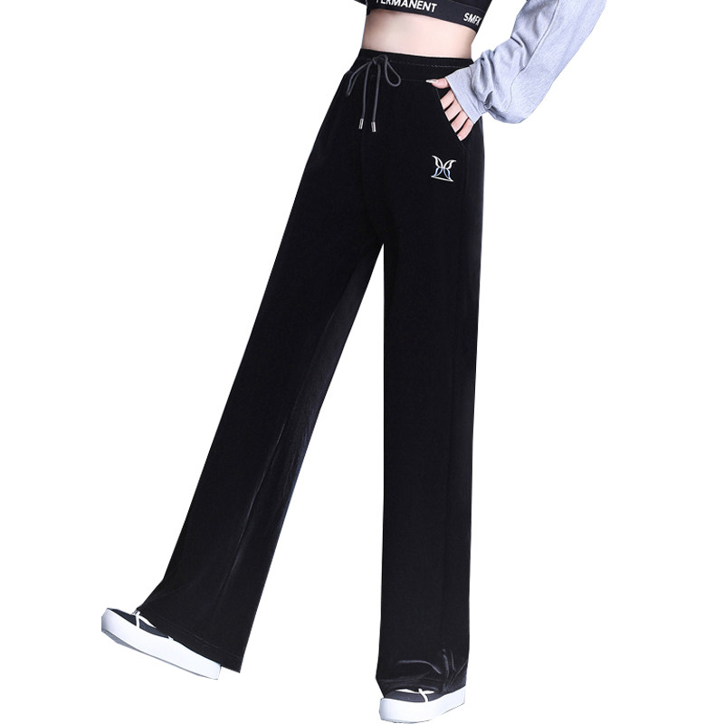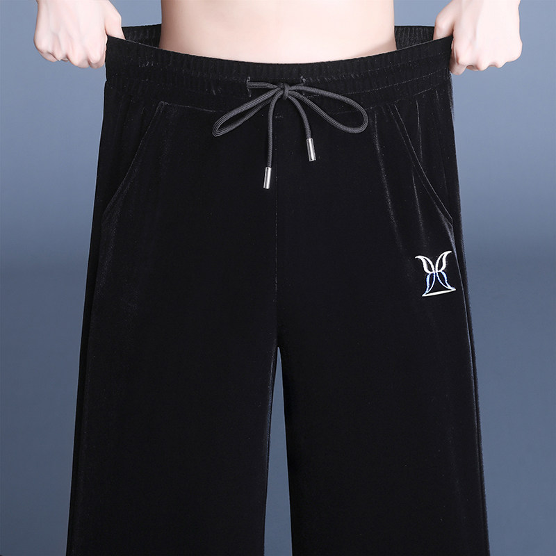 Gold Velvet Broadlegged Pants Woman Spring Autumn Thin pendants Sensation Trousers High Waist Tugging Pants Loose large size Size Silk Suede Female Pants