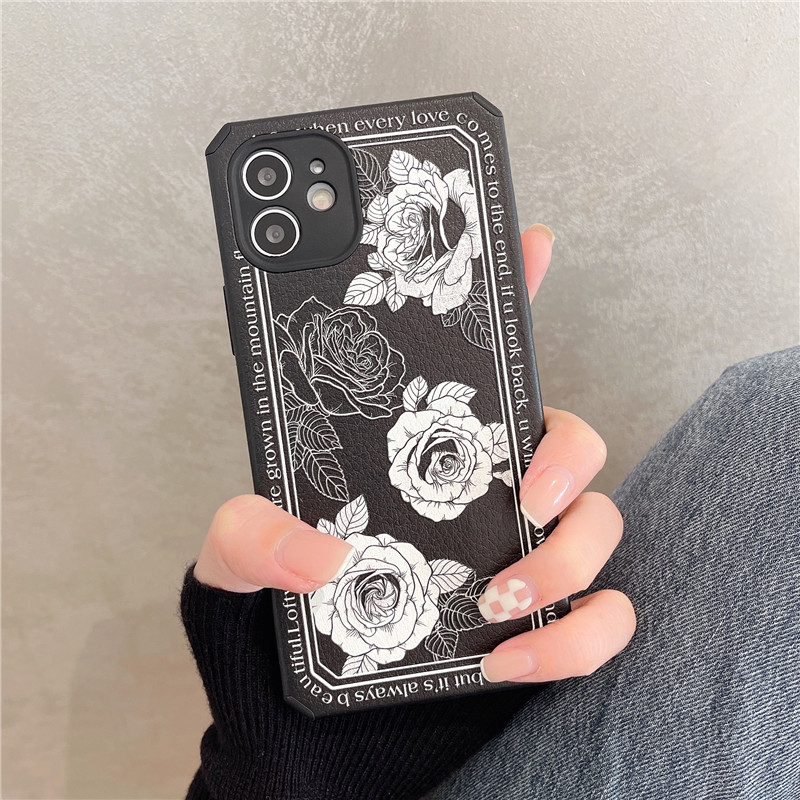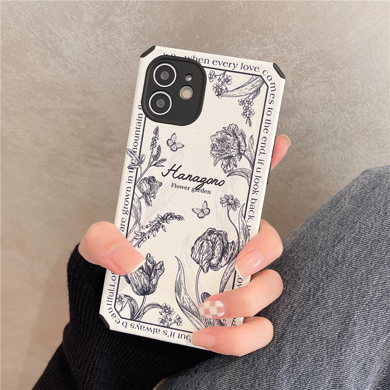 Niche retro flowers suitable for iphone13ProMax Apple 12pro mobile phone protective shell 14 high-end ins French