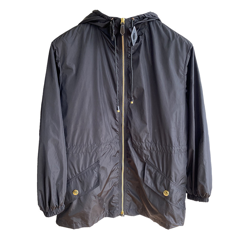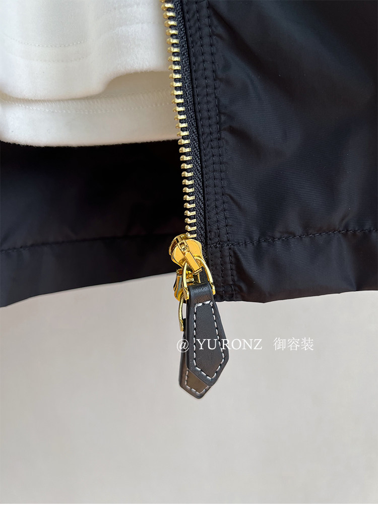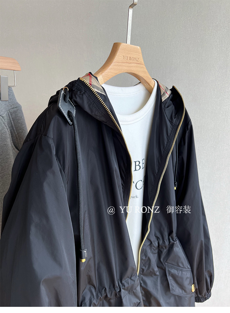 Closed eye-to-waist drawing rope ~ Inron wind matte black windproof pure color loose with cap windsuit jacket Women's autumn 2054