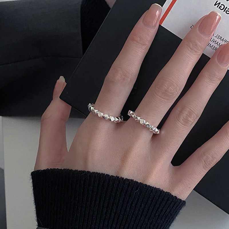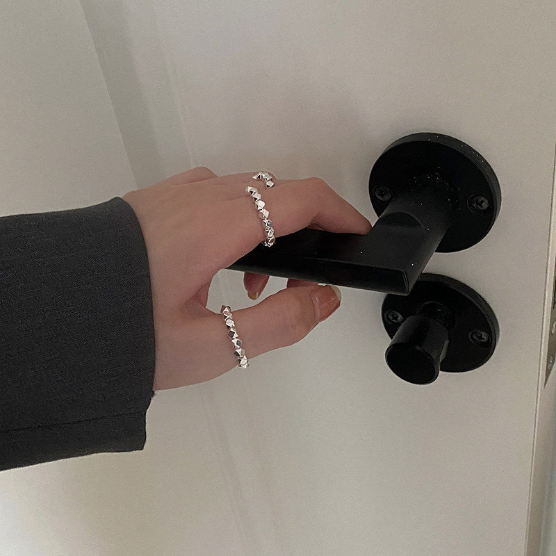 Physical giant flash-self-retention bright silver texture through body 925 pure silver opening ring female forefinger middle finger Han version