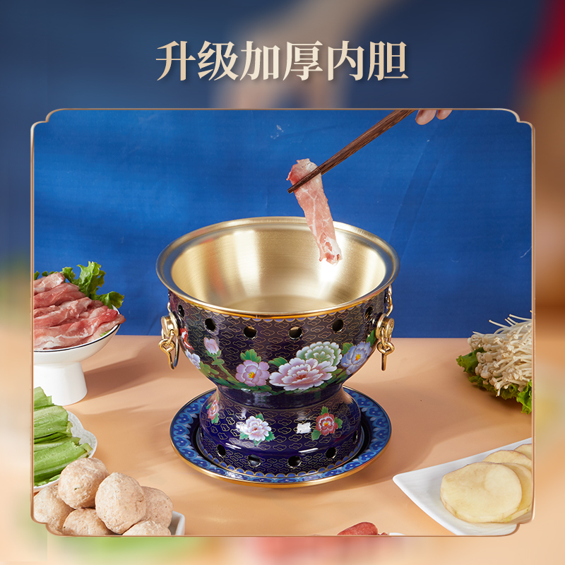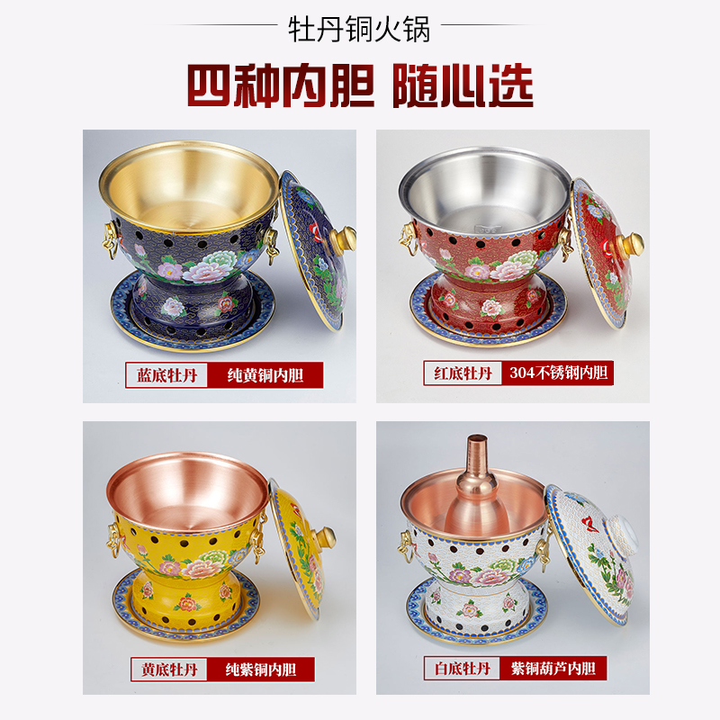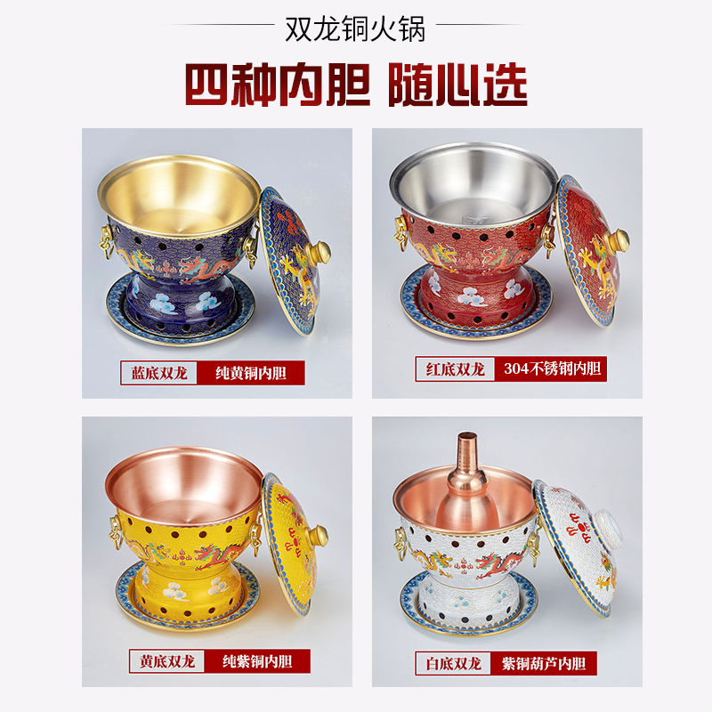 Jing Tai Blue Copper Hot Pot Thickened Pure Copper Enamel Alcohol Small Copper Pan Single Alcohol Stove One Person One Pot Red Copper Household-Taobao