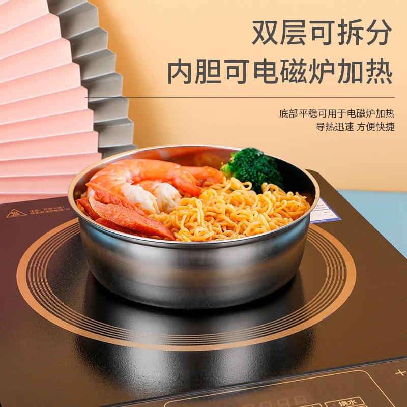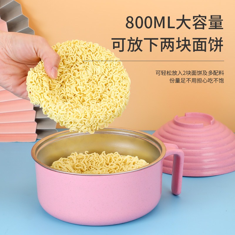 Stainless steel bubble bowl household large pepper student dorm with cover single bowl chopsticks convenient noodle kit
