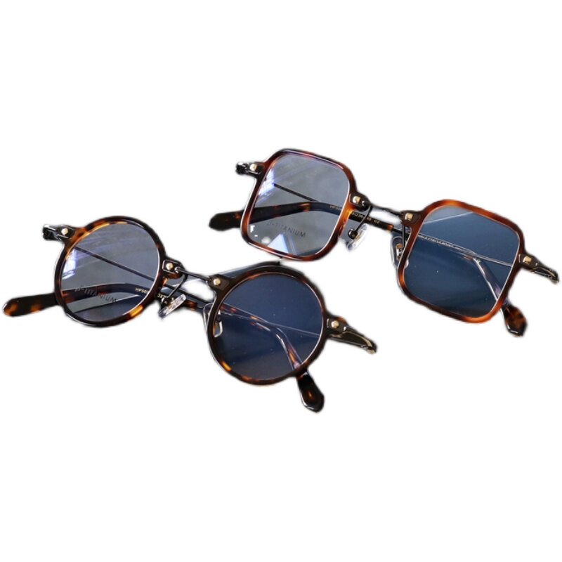 Handmade Eye Frame Sun Red Ray Frame Pure Titanium Plate Small Frame Small Face Retro Round Frame Box Nearsightedness Republic Wind Male