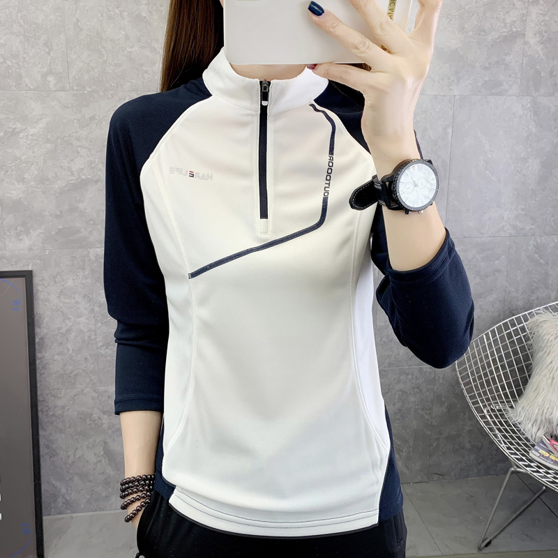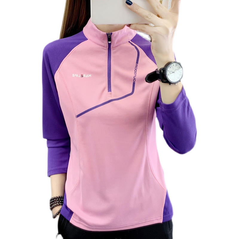 Slimming quick-drying women's spring and autumn elastic color-blocking long-sleeved T-shirt outdoor fitness morning running breathable quick-drying sports undershirt - Taobao