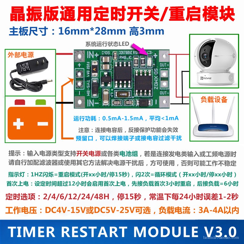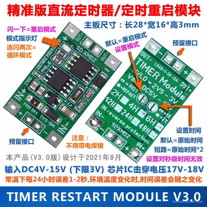 Precise version crystal oscillator timing restart switching machine module DC5V-15V 5V-25V load current 3A-4A