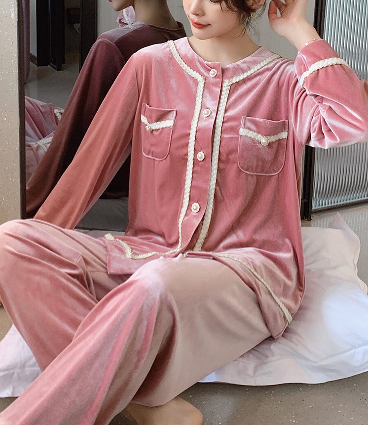 Golden velvet sexy pajamas ladies 2022 spring and autumn new winter home service long-sleeved suit large size can be worn outside
