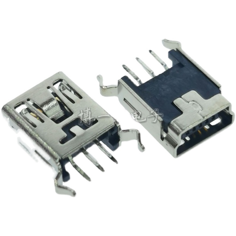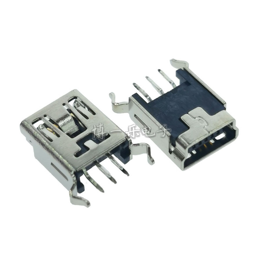 MINI USB connector Mini 5P vertical bending foot inline socket vertical plug-board 180-degree charging mother seat