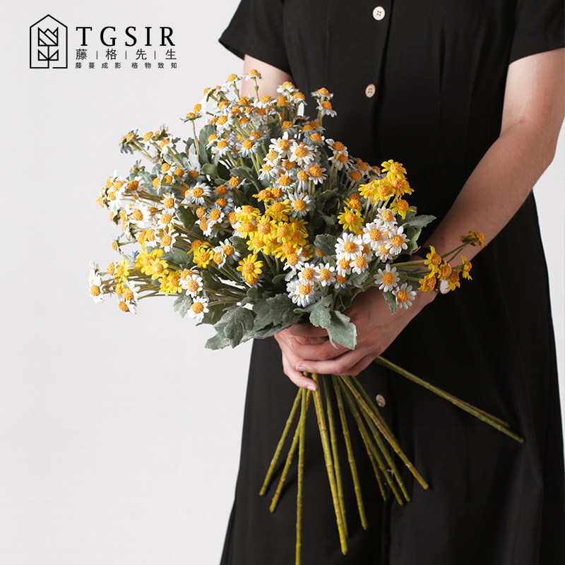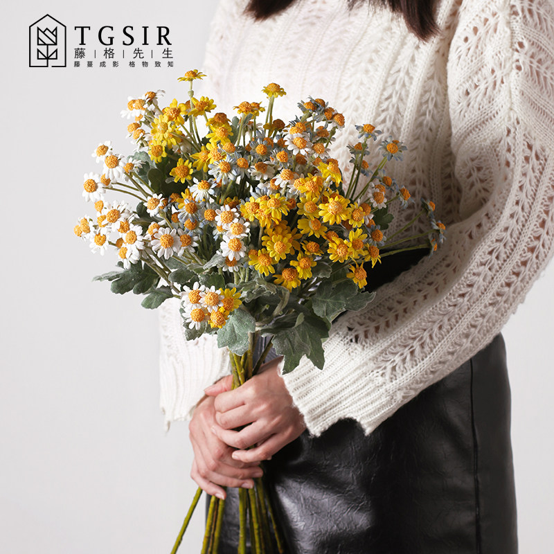 Small wild chrysanthemum simulation bouquet living room table flower arrangement silk flower dried flower decoration hand flower photography props daisy fake flower