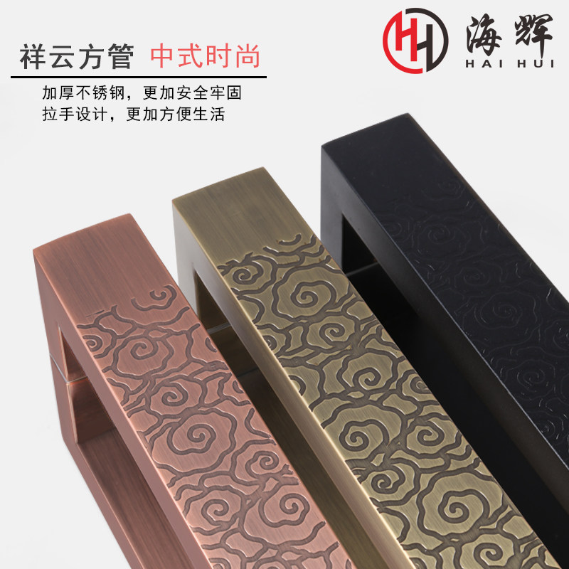 Thicken stainless steel square tube door handheld glass door handheld new Chinese push door and door handheld handheld custom