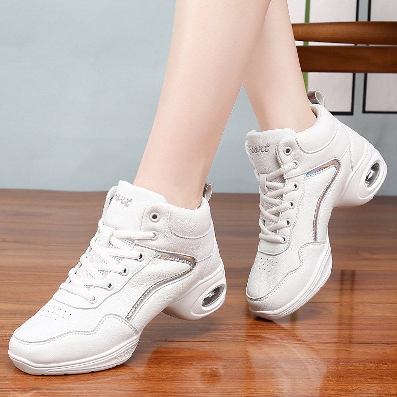 White Spring and Autumn Black Jazz Dance Shoes Wear Square Dance Shoes in Heel Shoes