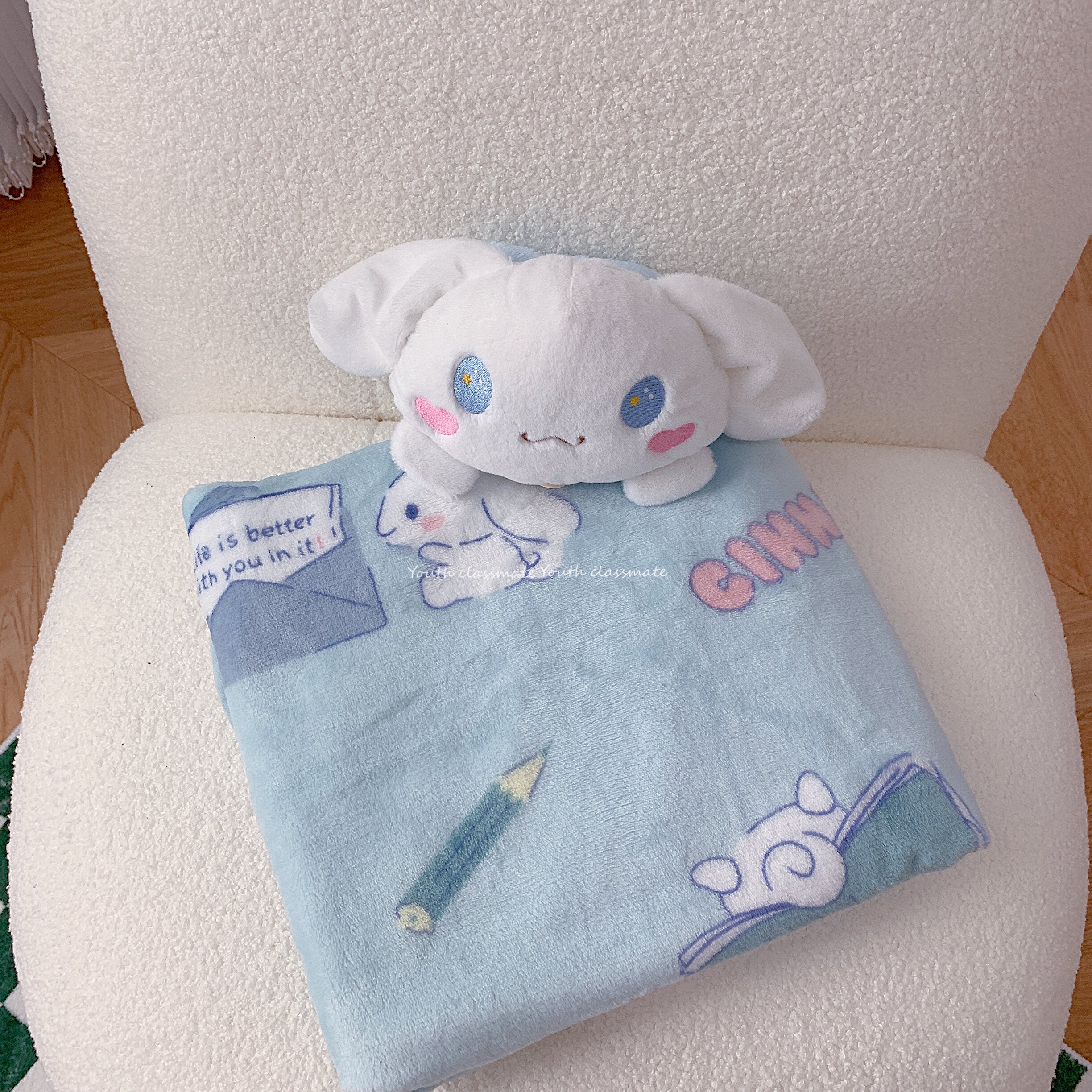 Soft Cute Jade Gui Dog Great Ear Dog Portable Roll Blanket Afternoon Sleep Pillow Coulomites Air Conditioning Blanket Plush Flannel Blanket Children Blanket