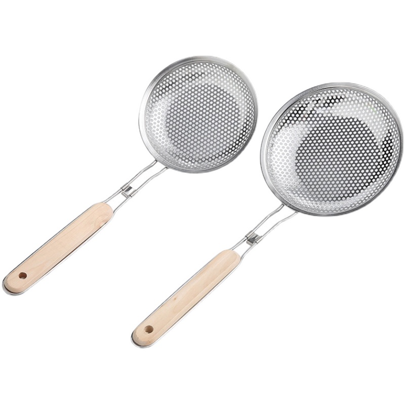 Kitchen Home Wood Long Handle Stainless Steel Fried Mesh Screen Leaking Spoon Drain mix noodles Oil spoon Hedge White Burning Vegetable Spoon