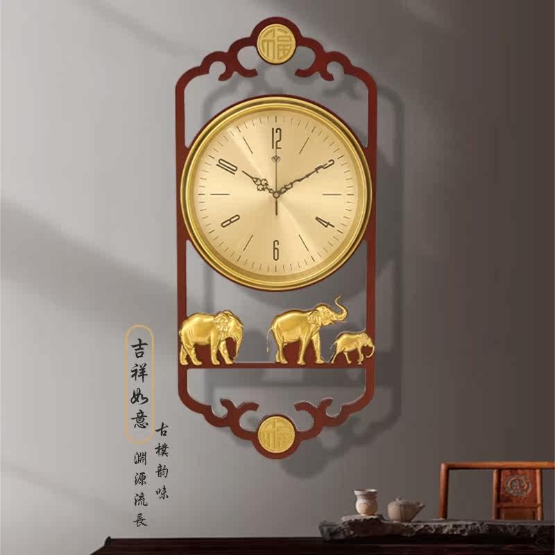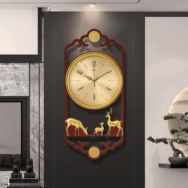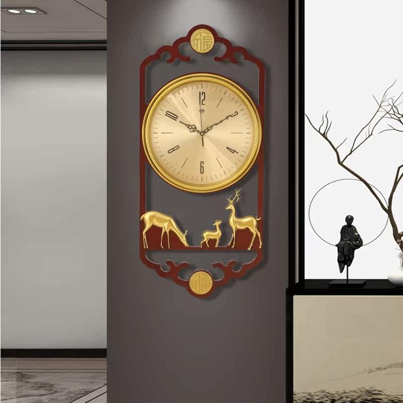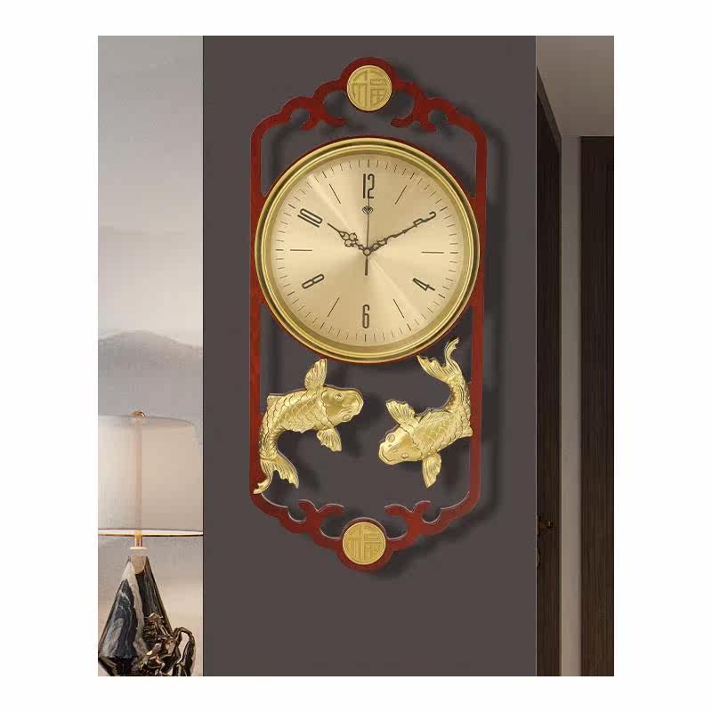 New Chinese hanging clock Living room Home Fashion China Wind solid wood Clock modern minimalist Atmospheric personality mute clock