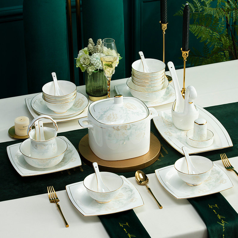 Home Bowls Dish Suit Bone porcelain tableware suit bowls tray Jingdezhen Ceramic ware Chinese upscale Phnom Penh Sleeve Bowl composition
