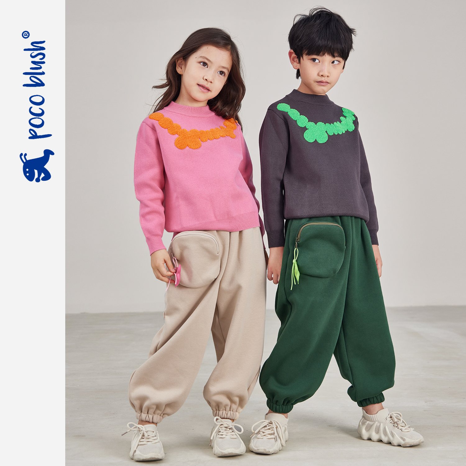 pocoblush Loch Ness series children's new winter outer wear loose boys and girls fleece thickening pants