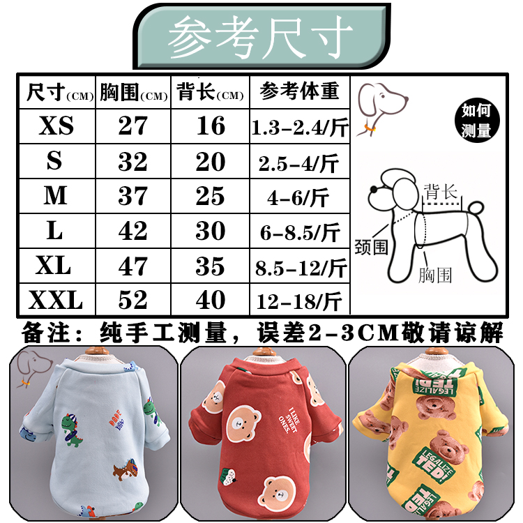 New pet dog sleeping clothes autumn and winter cartoon small dog Teddy clothing cute cat anti-hair loss plus fleece