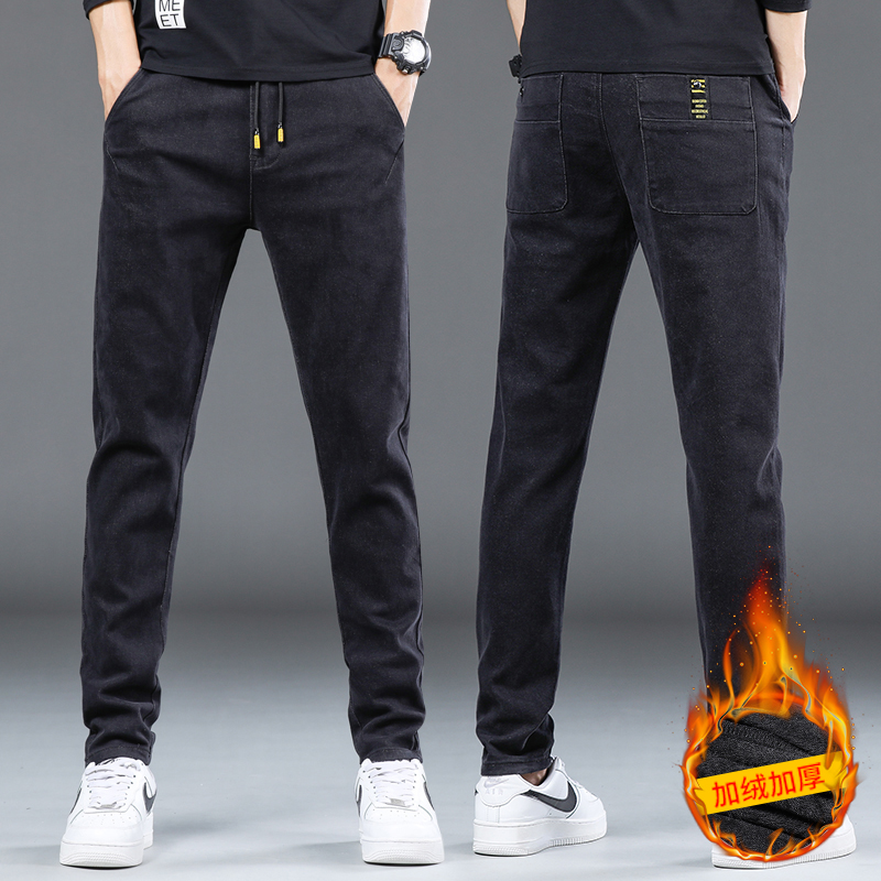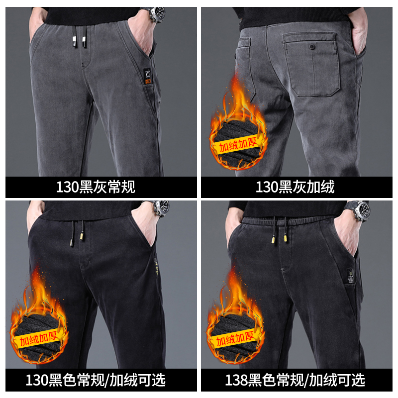 Men Plus Suede Jeans Thickened Winter Pants Men Casual Pants Pants Autumn winter paragraph 2023 New tightness waist Men's pants-Taobao