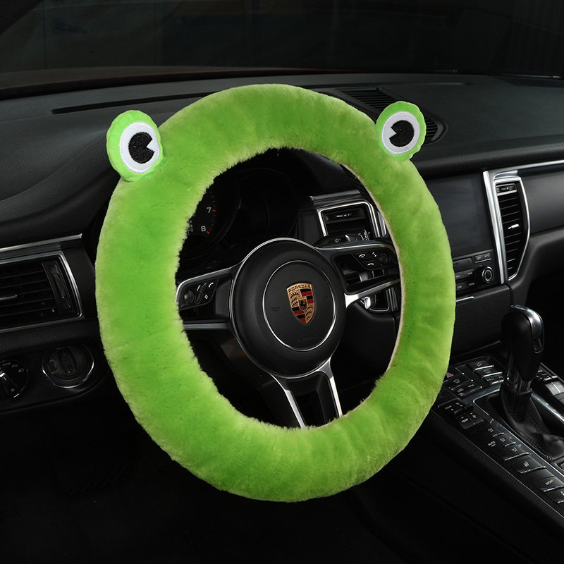 Winter pure wool steering wheel cover fur one short plush cartoon cute lady net red car warm handle cover