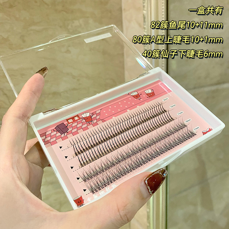 Fishtail A Type False Eyelash Graft Fairy Hair Lower Eyelash Single Tuft Super Natural Emulation Female Single Root Self-Glued Net Red