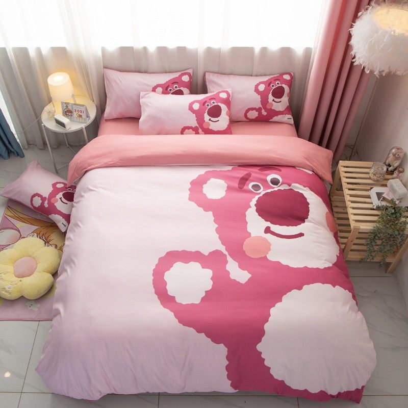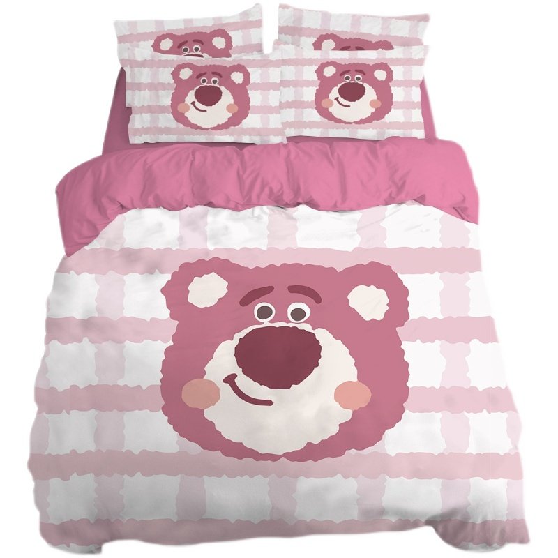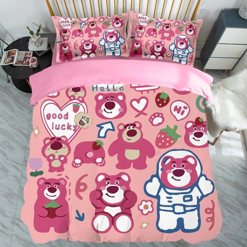 Cartoon Strawberry Bear Four Pieces Cute Bed Linen Girls Quilt Cover Toys Total Mobilised Bed Accessories Three Sets Dormitory