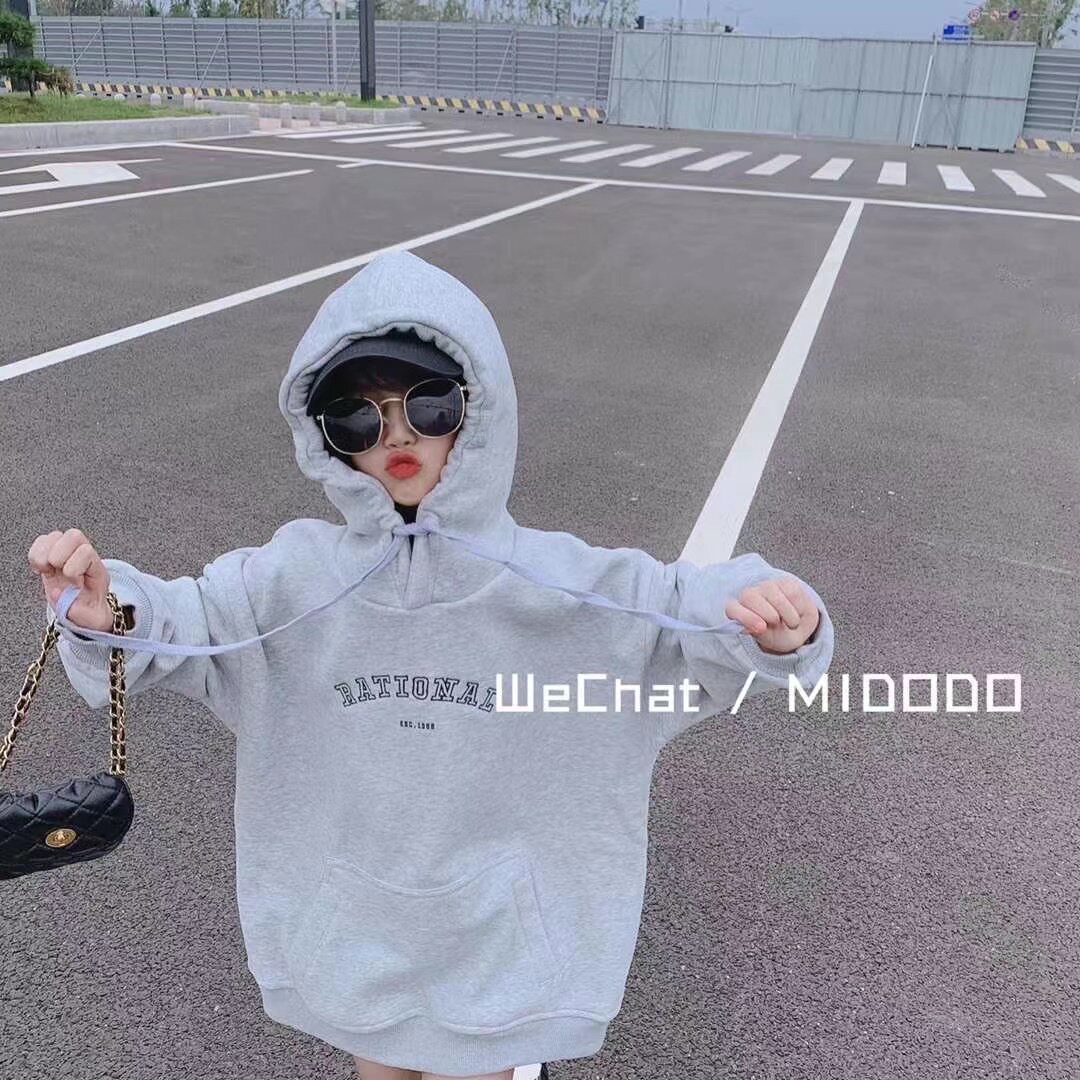 South Korean children's clothing 2021 new gush letters thick cotton T girl foreign pie fur ring CUHK Pure Cotton Loose Sleeve Hooded Sweatshirt