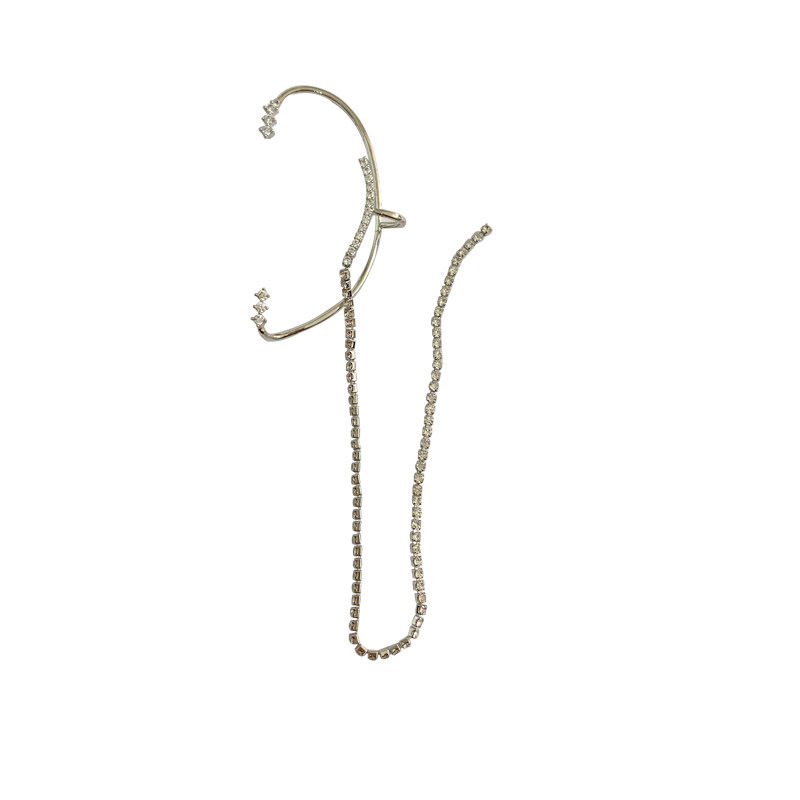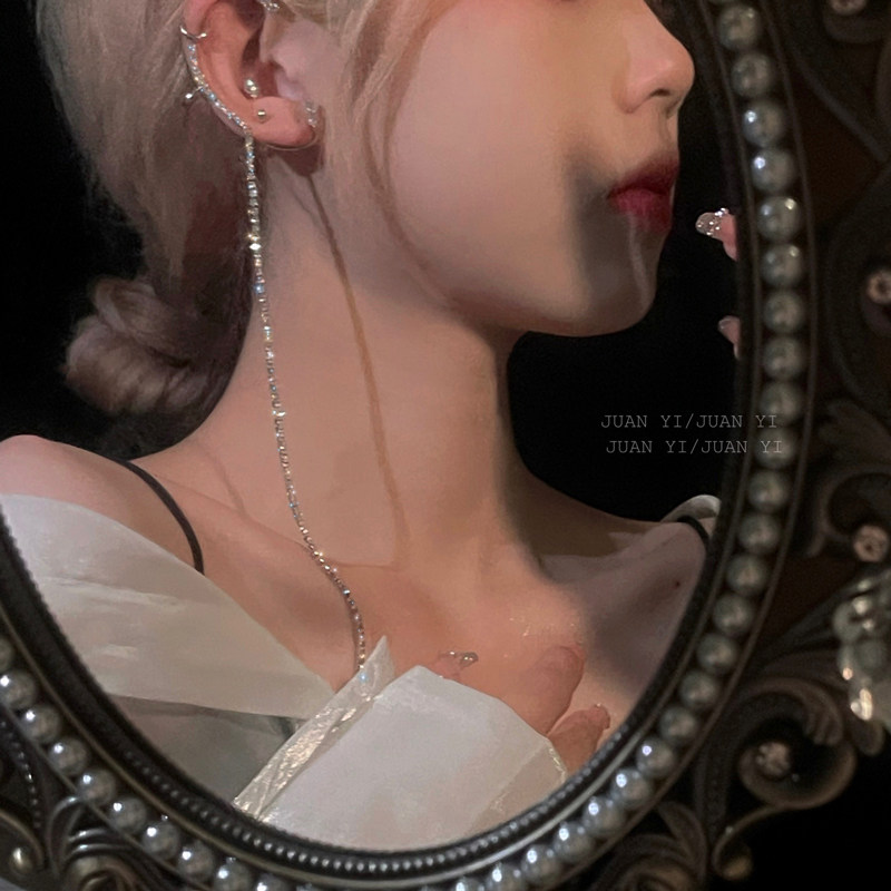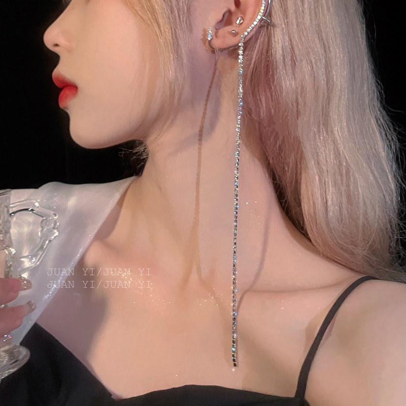 Fried street girl ~ super-long streaming Su full drill ear hanging exaggerated temperament to be thin and lukewarm with no earthy ear clip