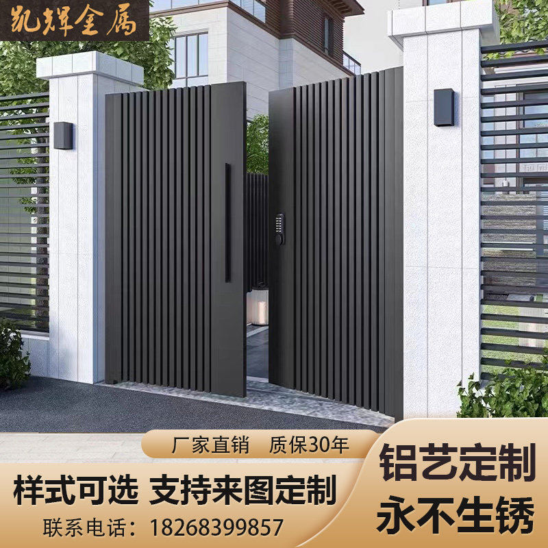 Villa Gate Courtyard Door Countryside Aluminum Art Garden New Chinese Style New Custom Yard Small Door Single Double Open Shutter Door