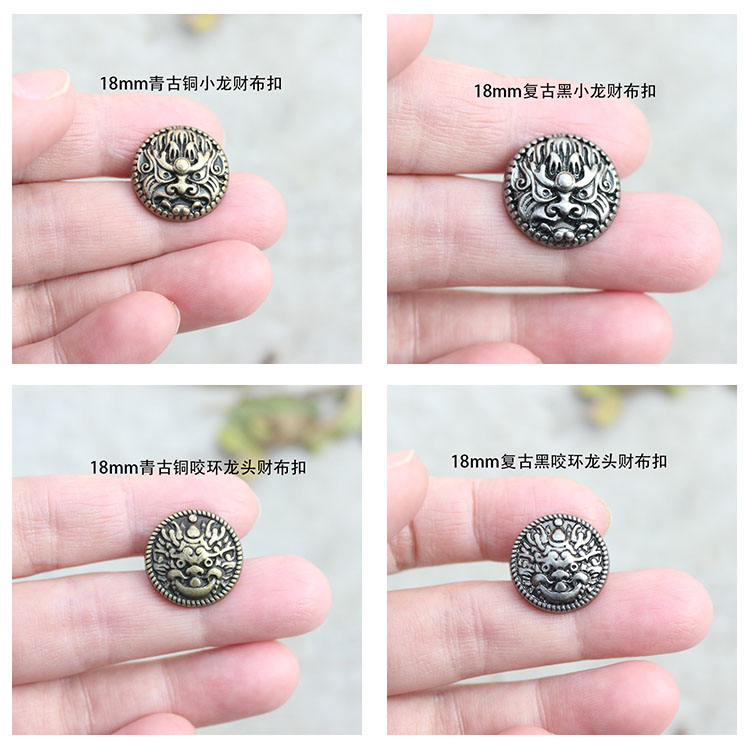 18mm Retro Black Dragon Tiger Financial Cloth Buckle 18mm Qing Ancient Bronze Bronze Dragon's cloth button 18mm Retro black bite ring Head chaeb button 18mm Qingku copper bite ring Head chaebuu buttu