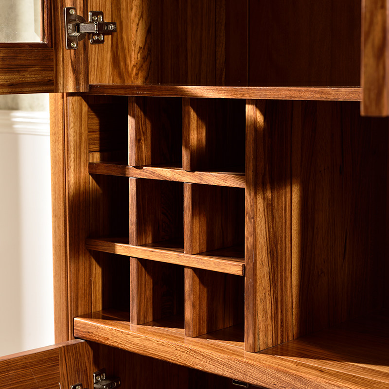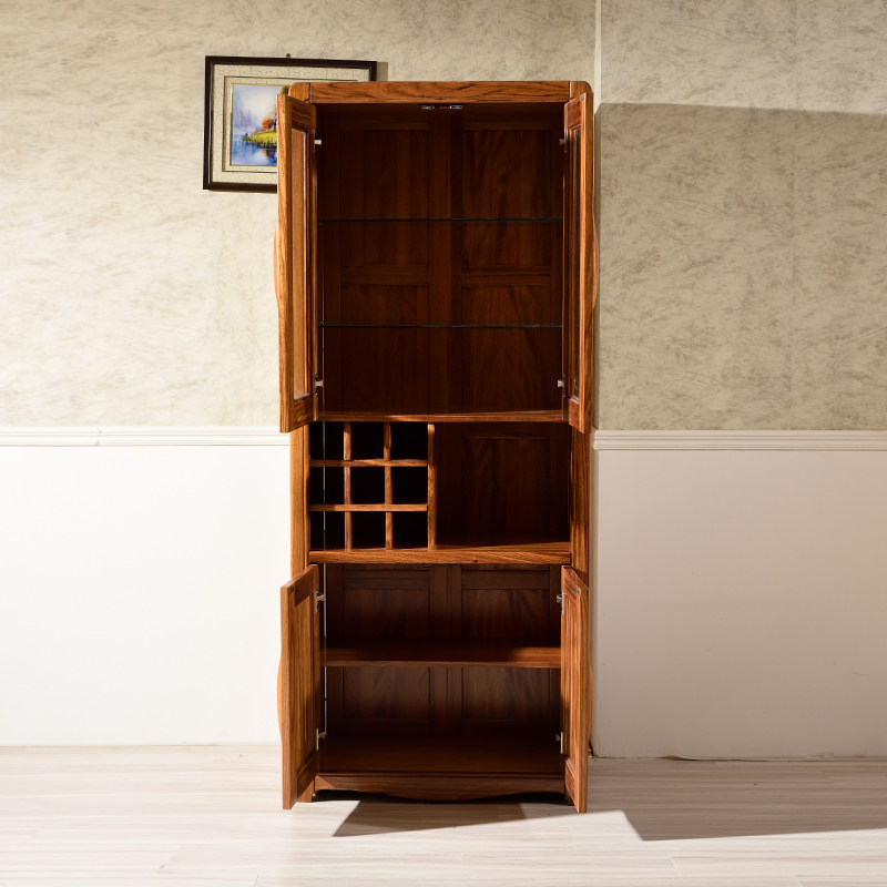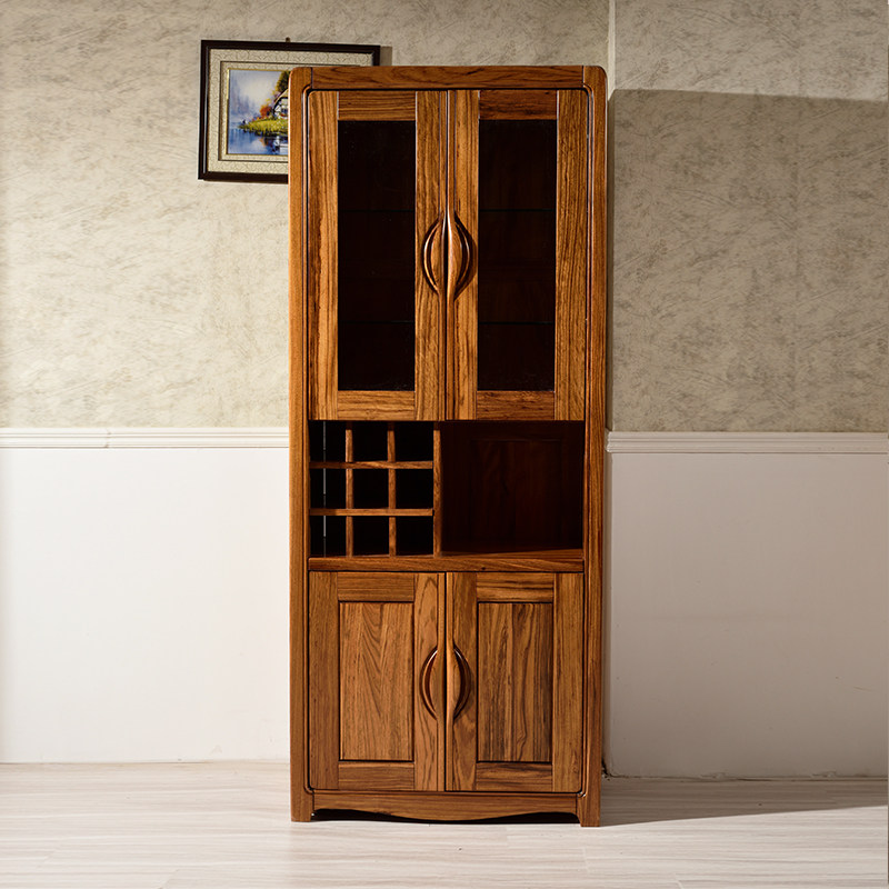 Wujinmu wine cabinet modern Chinese double door dining room storage cabinet all solid wood simple storage cabinet glass door entrance cabinet