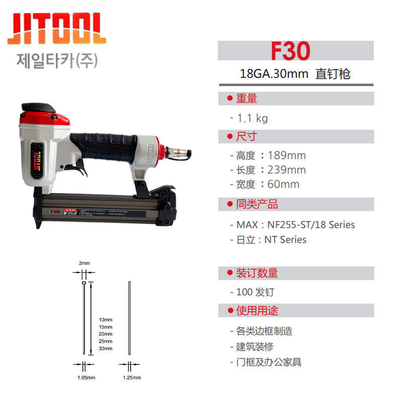 South Korea Jituo JITOOL nail gun F30 air nail gun F32 furniture nailer carpentry straight nail gun JIT air nail gun