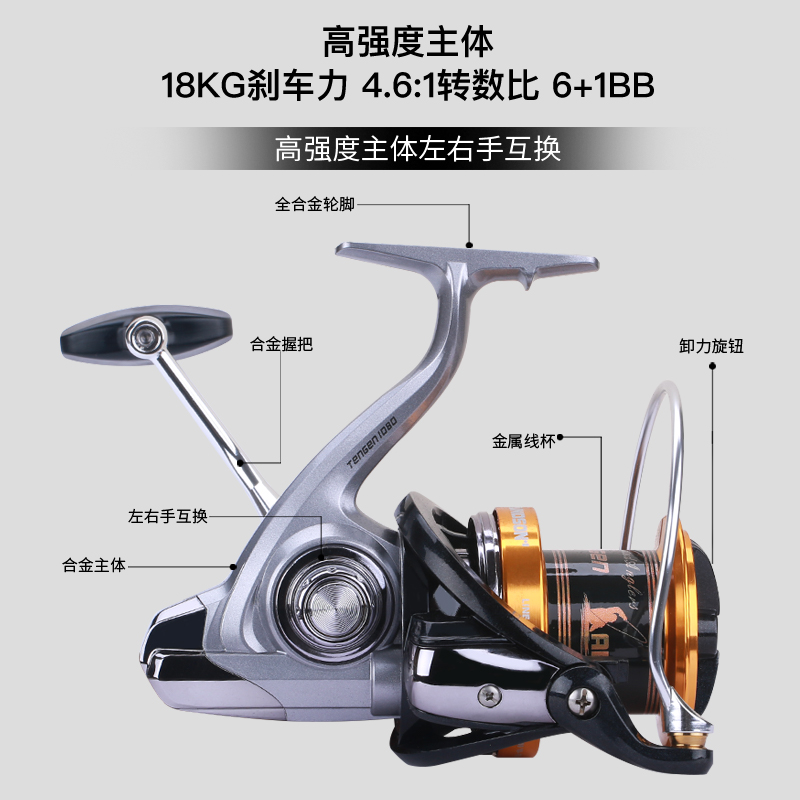 Imported fishing wheel Amundsen spinning wheels all metal inclined mouth super large fishing line cup fishing sea fishing far anchor fishing wheel
