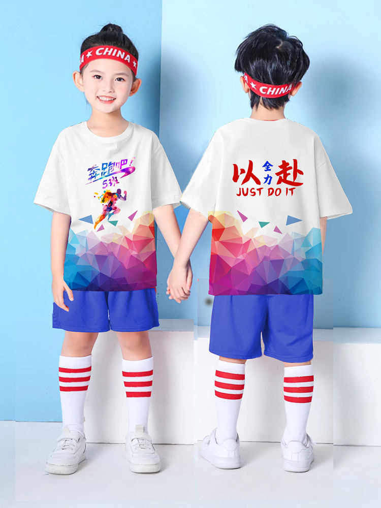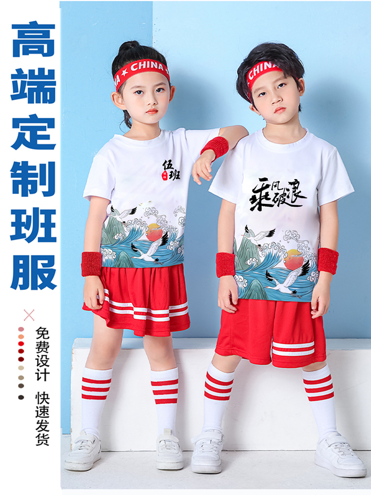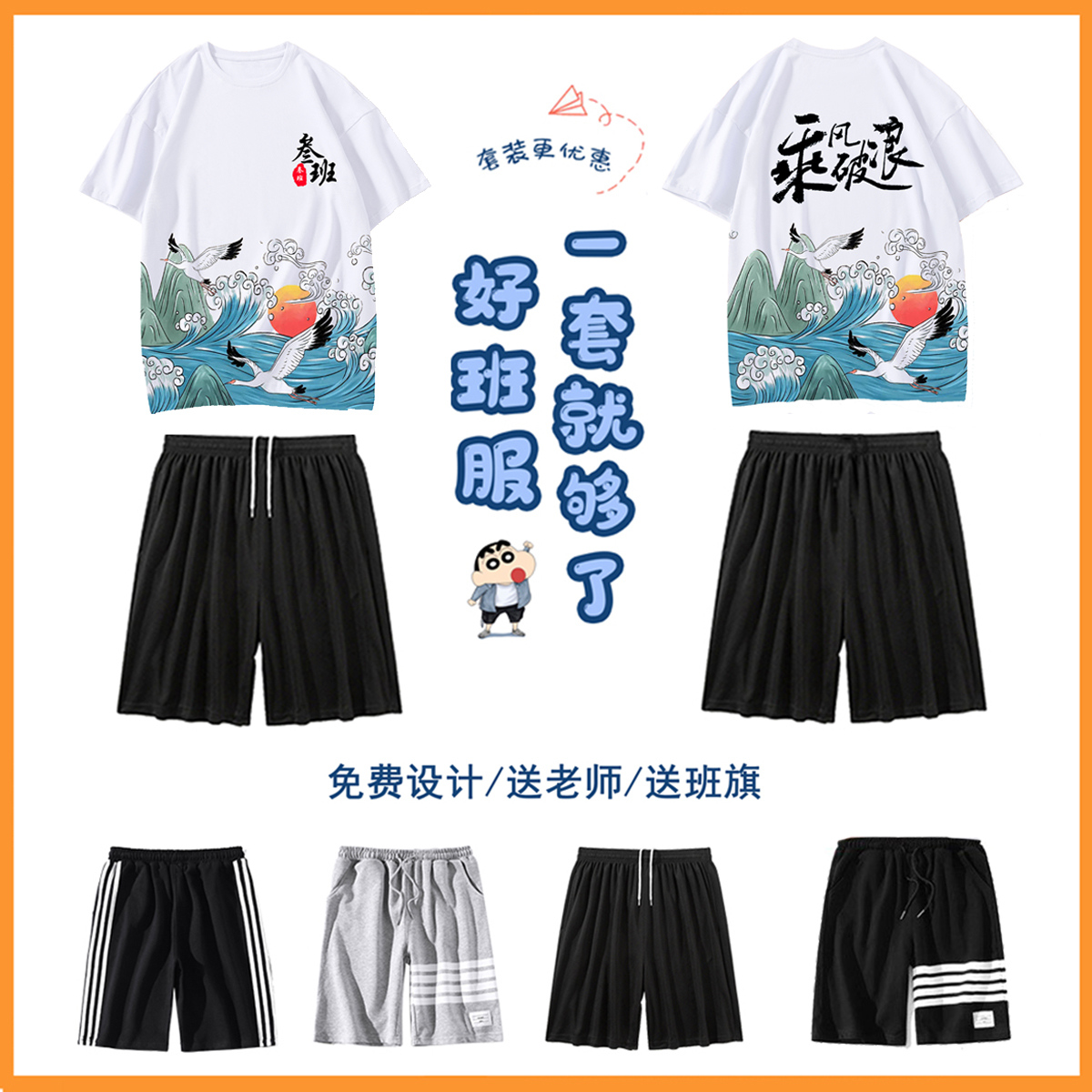 Primary School Kindergarten Suit Children Class Clothing Customised T-shirt Graduation Pure Cotton Short Sleeve Shirt Summer Camp Group Performance Suit