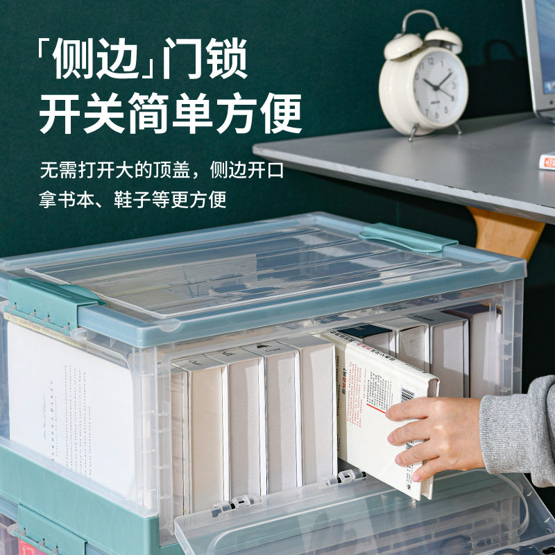 Large toy storage box foldable student book sorting box side door with wheels clothes storage box home