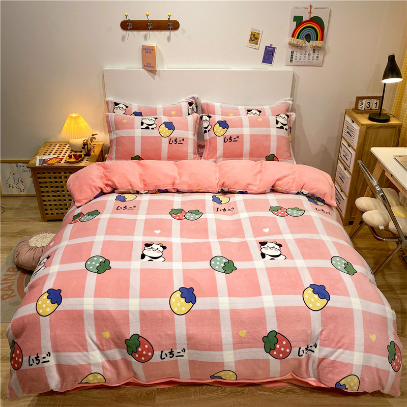 Four pieces of double-sided flannel flannel sleeve in winter coral velvet bed twinter cartoon three pieces