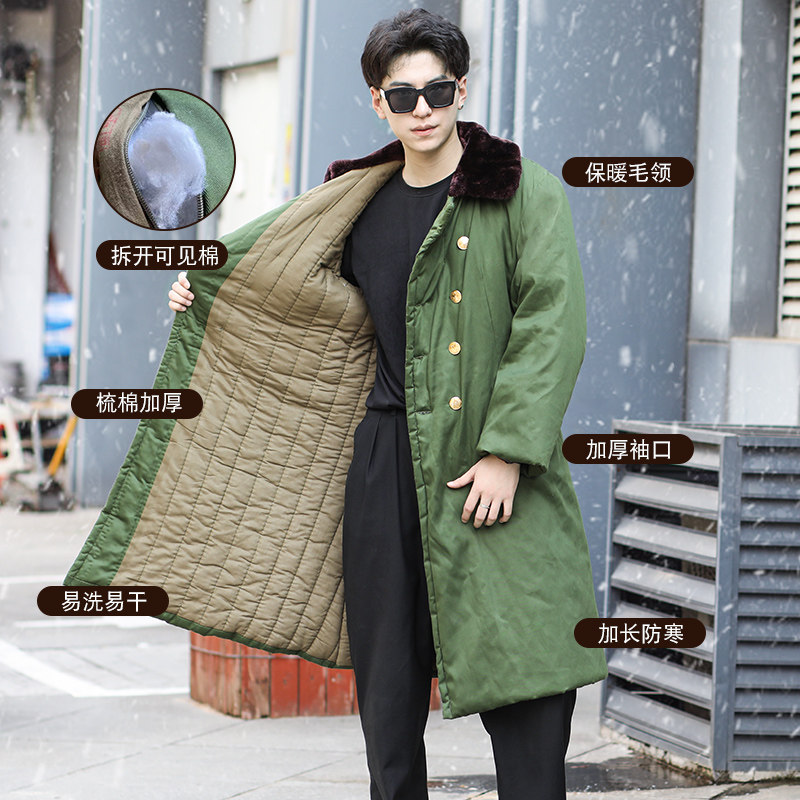 Winter army cotton coat men and women thickened green long section anti-cold warehouse labor insurance northeast warm cotton-padded jacket security cotton-padded clothes