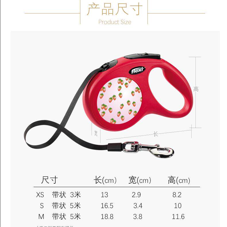 Fletch Strawberry Flexi Automatically Reduced Traction Rope Large and Medium-sized Dog Rope German Pet Walking Dogs Walking Dogs