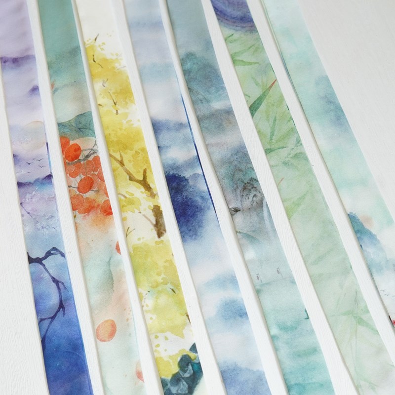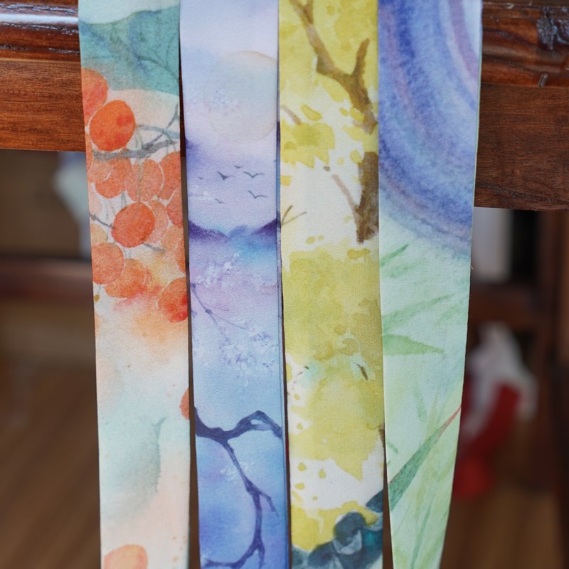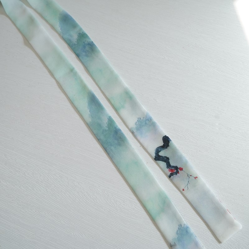 Cloud dark fog light original imitation hand-painted national wind landscape Han clothing printed hair with ancient wind hair rope strip silk scarf floating
