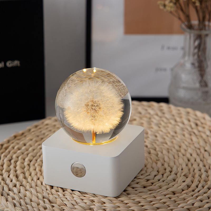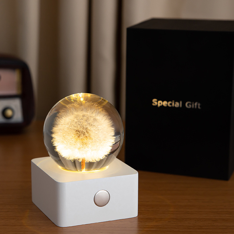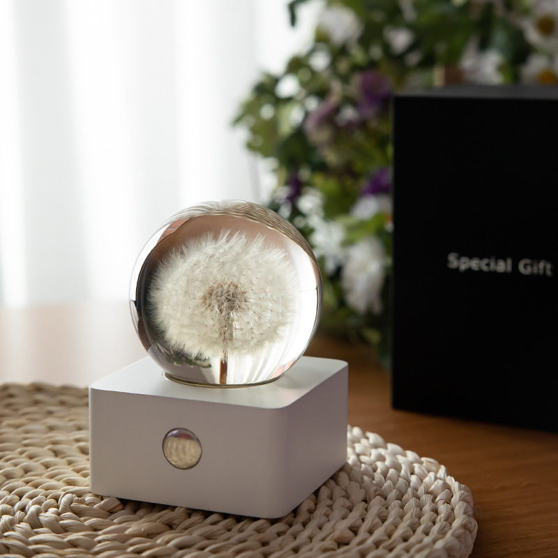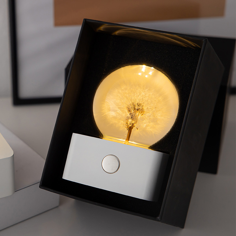 Dandelion Specimen Dry Flower Charging Small Night Light Creative Girl Gifts Swing Piece Birthday Send Girlfriend Goddess Table White-Taobao