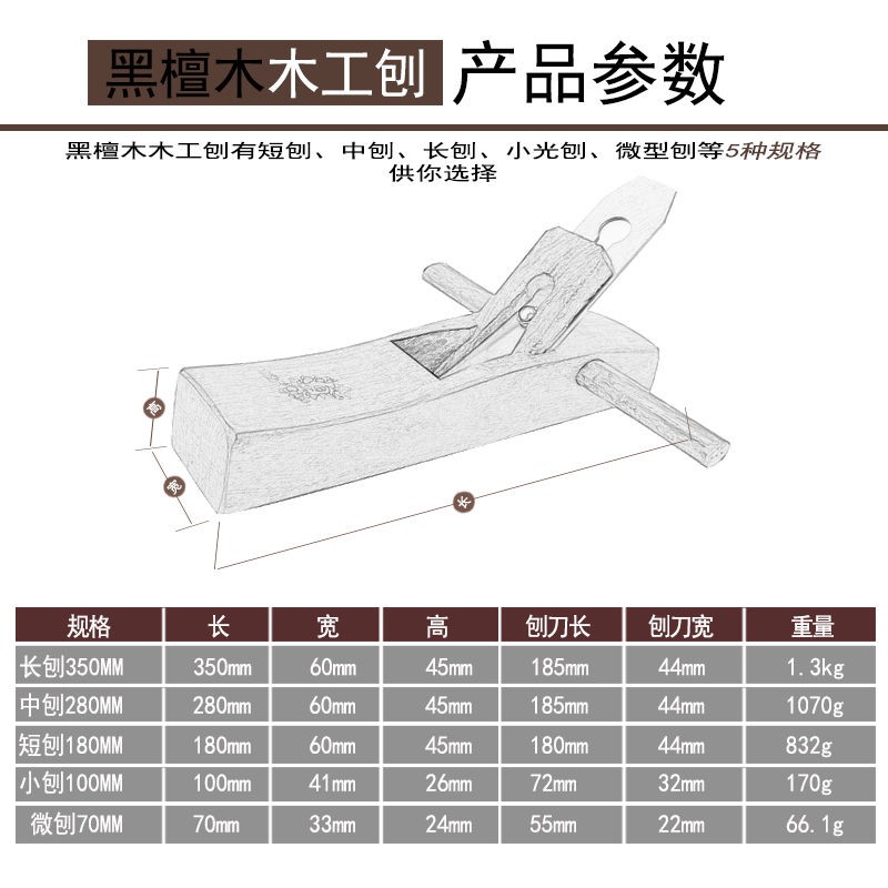 Ebony woodworking planer planer wood planer household hand planer wood planer push planer carpenter DIY carpentry tools