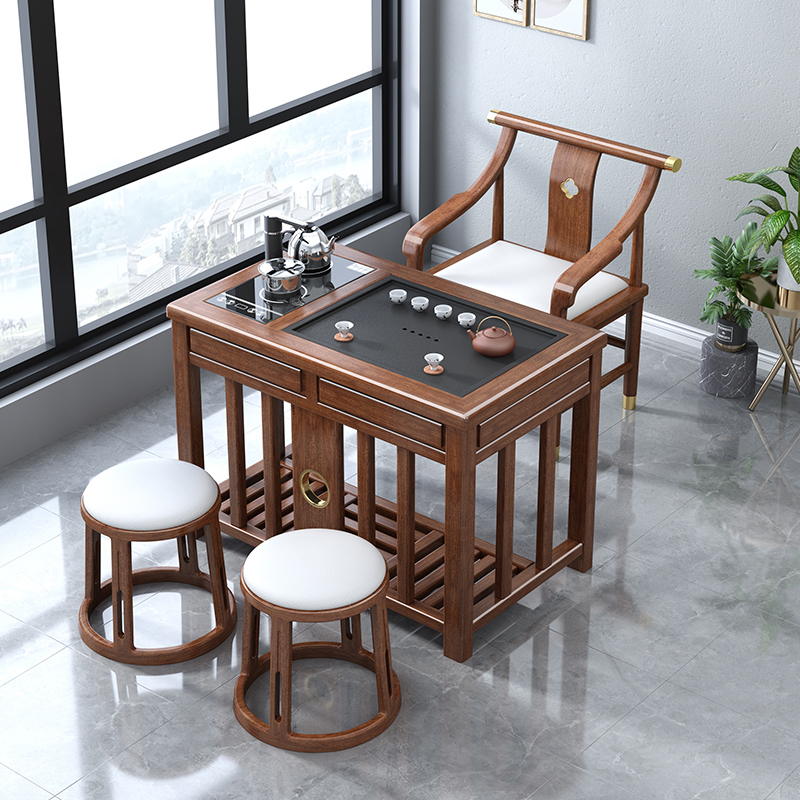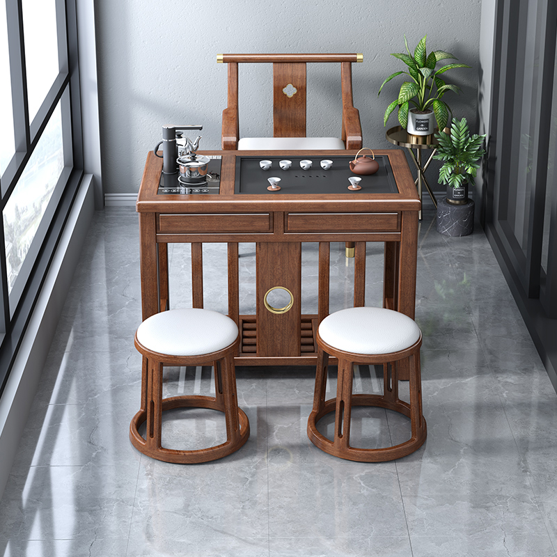 Balcony tea table home small tea table and chair combination small apartment new Chinese style solid wood modern minimalist walnut small tea table