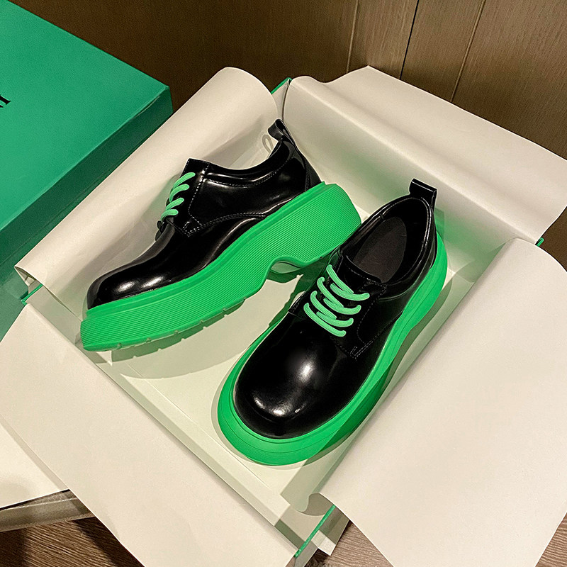 Retro thick bottom Inn Wind tubu bv big head small leather shoes women 2022 spring new genuine leather muffin round head jk single shoes