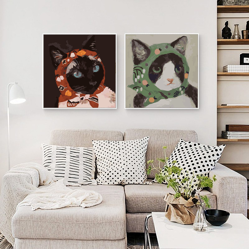 Painter Password Abstract Diy Digital Oil Painting Hand Painted Cartoon Animal Oil Color Painting Stuffed Cat decoration Painting