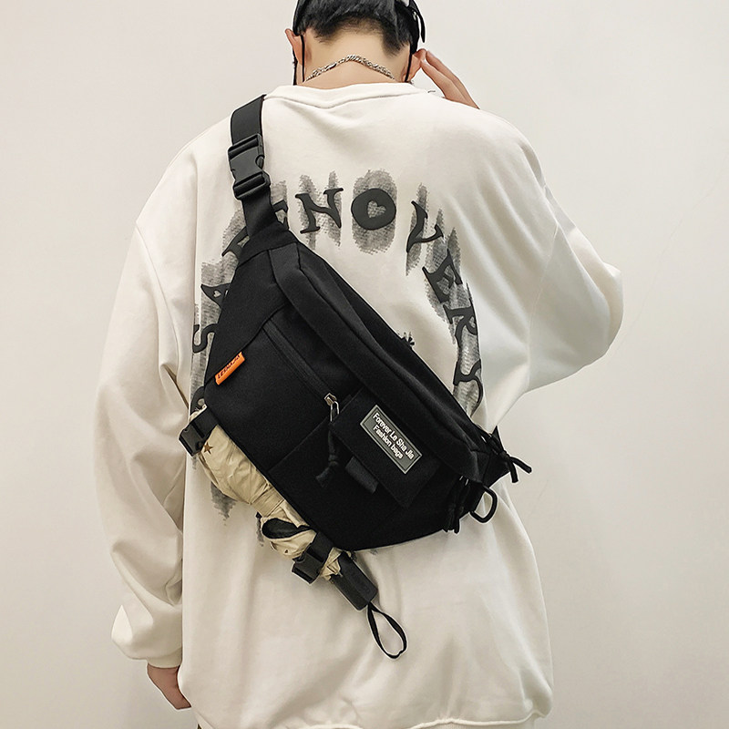 Tide Cards Skew Satchel Men's Large Capacity Day Ensemble Tooling Chest Bag Students SHOULDER BAG Tide Cool Casual Single Shoulder Bag
