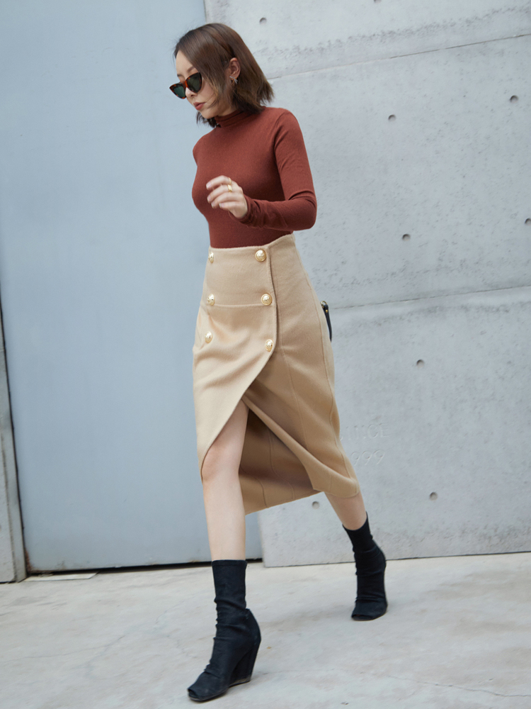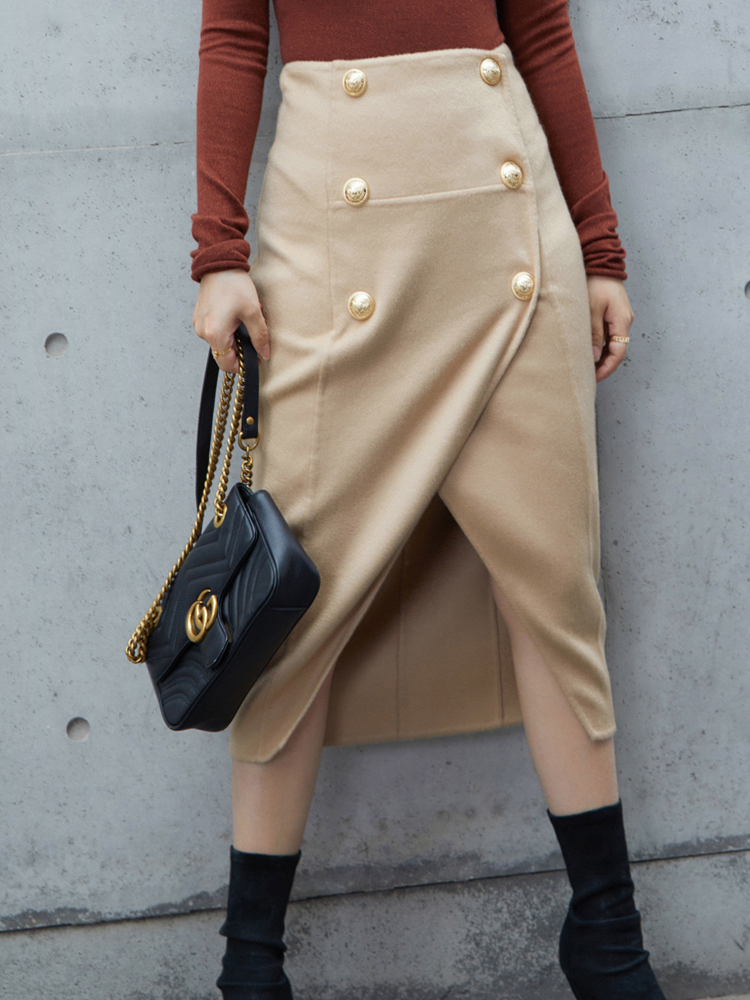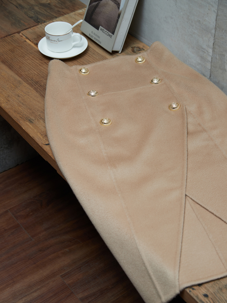 Boss Z Kashmir 750g pure cashmere skirt High waist double-breasted handmade double-sided woolen skirt