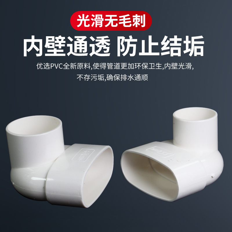 PVC water pipe accessories Daquan makeup room toilet water 75 oval flat mouth sewage drain pipe tee joint