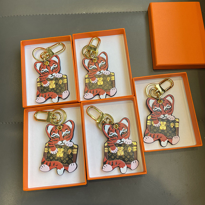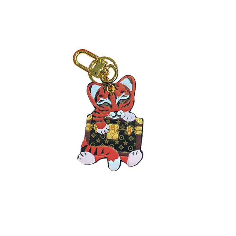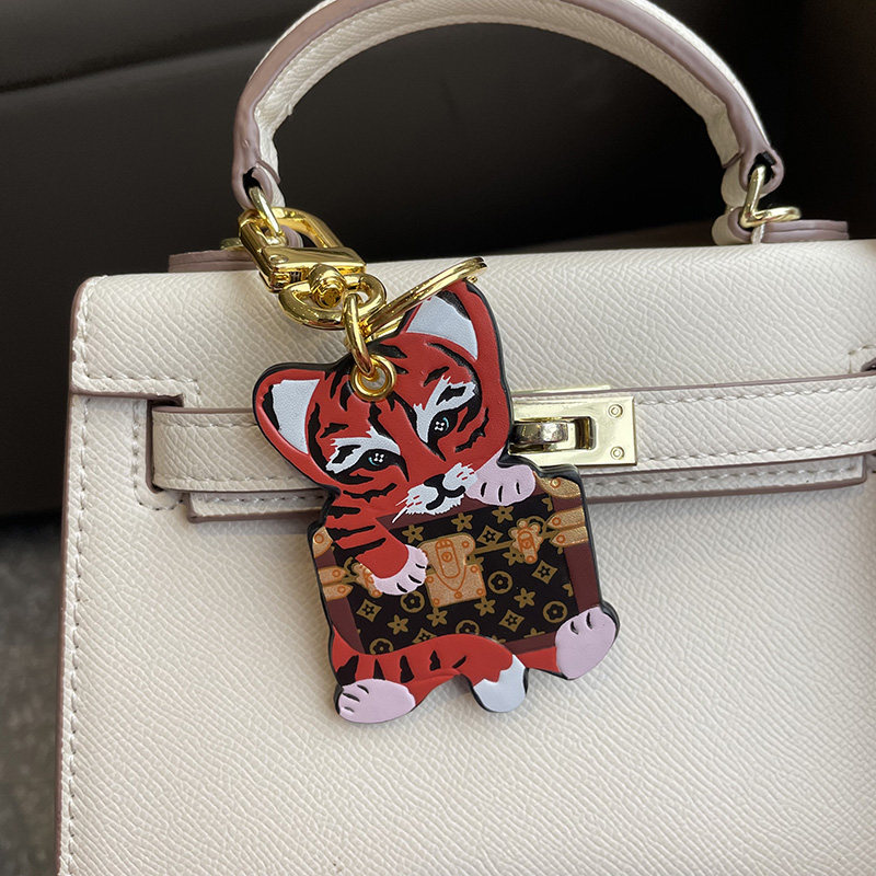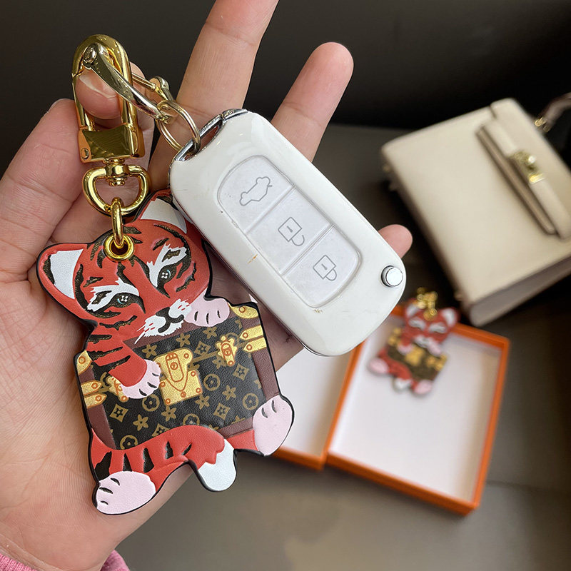 LVGEDETE handmade genuine leather car key buckle Old flower small tiger pendants doll bag ornament Shoulder Bag Hanging Accessories