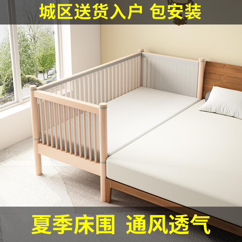 Solid wood children's bed baby baby small bed stitching big bed widened side bed with guardrail boy and girl single custom